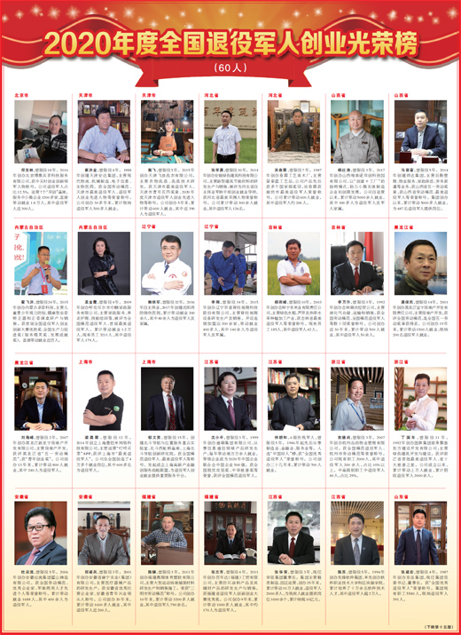 2020年度全国退役军人创业光荣榜