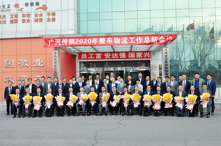 2021年3月25日,广汽传祺2020年整车物流工作总结会议在天津安达集团隆重召开。此次会议共有来自广汽传祺汽车、广汽商贸集团以及公路运输、港口码头、水路运输、保险公司等20个单位70多位代表参会。广汽商贸总经理闫建明、广汽乘用车副总经理、广汽传祺销售有限公司总经理李勇等主要负责人到会。安达集团党委书记董事长崔洪金作为特邀领导参会,安达物流总经理郑玉强陪同。本次年会主题为“一祺智行、共进共赢”,围绕主题,会议共分两大部分内容,即广汽传祺2020年整车物流工作总结和2021年整车物流运输签约。整场活动设置签到、参观、座谈、会议、合影等五大环节流程。安达物流作为承办单位,通过活动安排多方位展现集团的企业文化和员工风采。