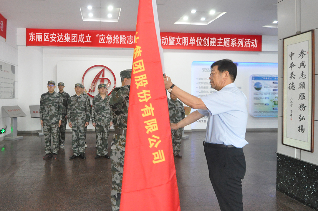 为进一步提高安达集团应急救援响应处置能力,及时应对集团及社会出现的重大突发抢险救援事件,集团党委决定成立一支能力强反应快的应急抢险志愿服务队。7月11日上午,在安达集团办公室和后勤保障部的统一安排下,安达集团应急抢险志愿队正式成立,并在一楼大厅举行授旗仪式