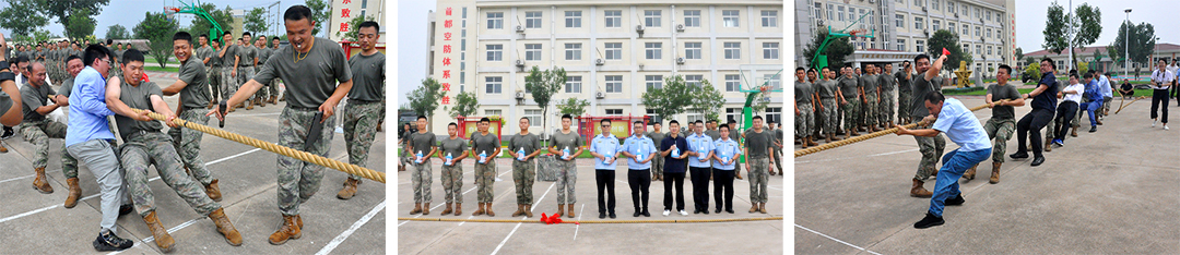 参观结束后,大家集中前往训练场,实地感受军队训练和装备展示。官兵们精湛的军事技能、昂扬的精神风貌以及先进的装备,让大家直观地领略到了人民军队的强大实力,也更加深刻地理解了 “强军梦” 的内涵。随后,党建互联共建单位选派代表与部队官兵联合开展了拔河比赛互动游戏。赛场上,双方队员奋力拼搏,场外加油声、呐喊声此起彼伏,在欢乐的氛围中进一步拉近了军民距离,增强了军民感情。