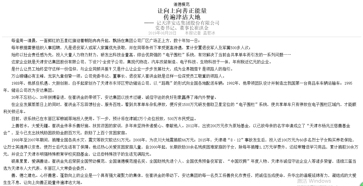 《天津日报》刊发 让向上向善正能量传遍津沽大地-记开云直播nba_开云(中国)党委书记董事长崔洪金